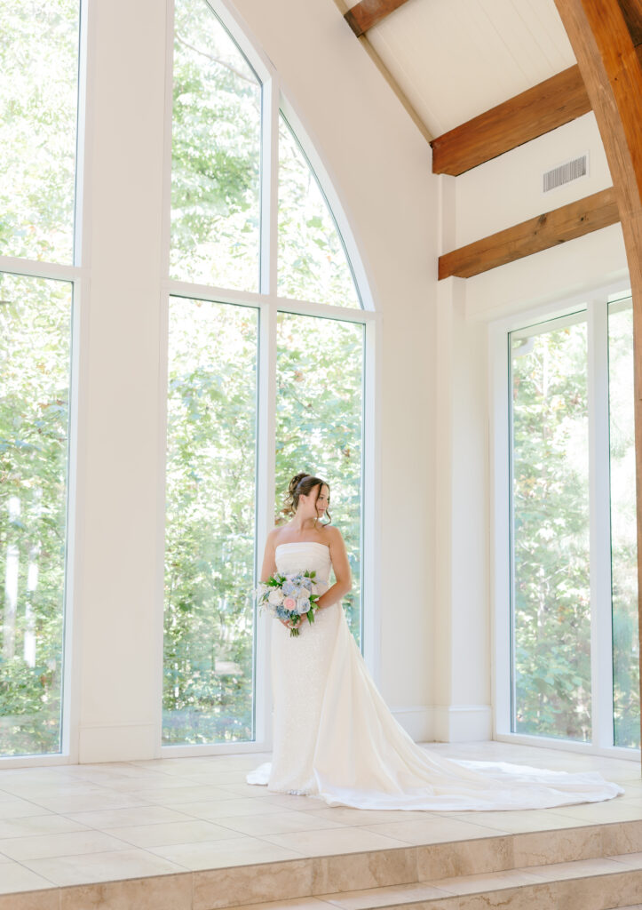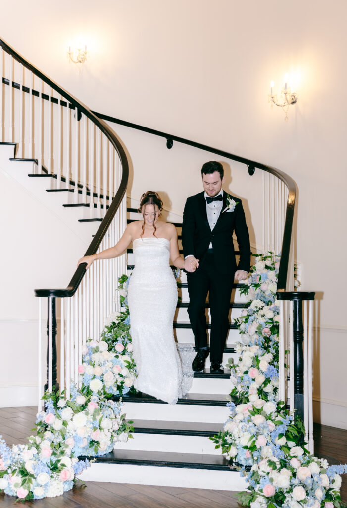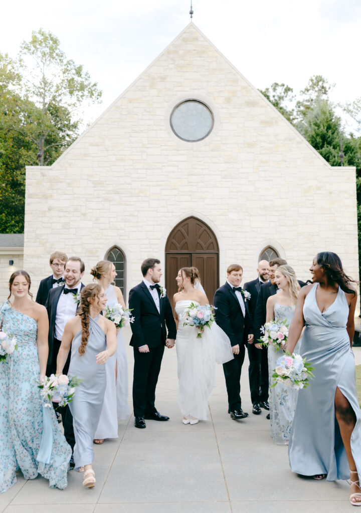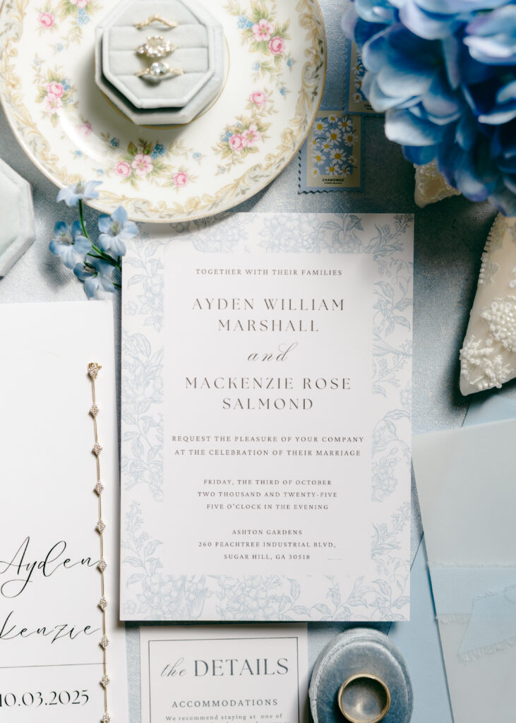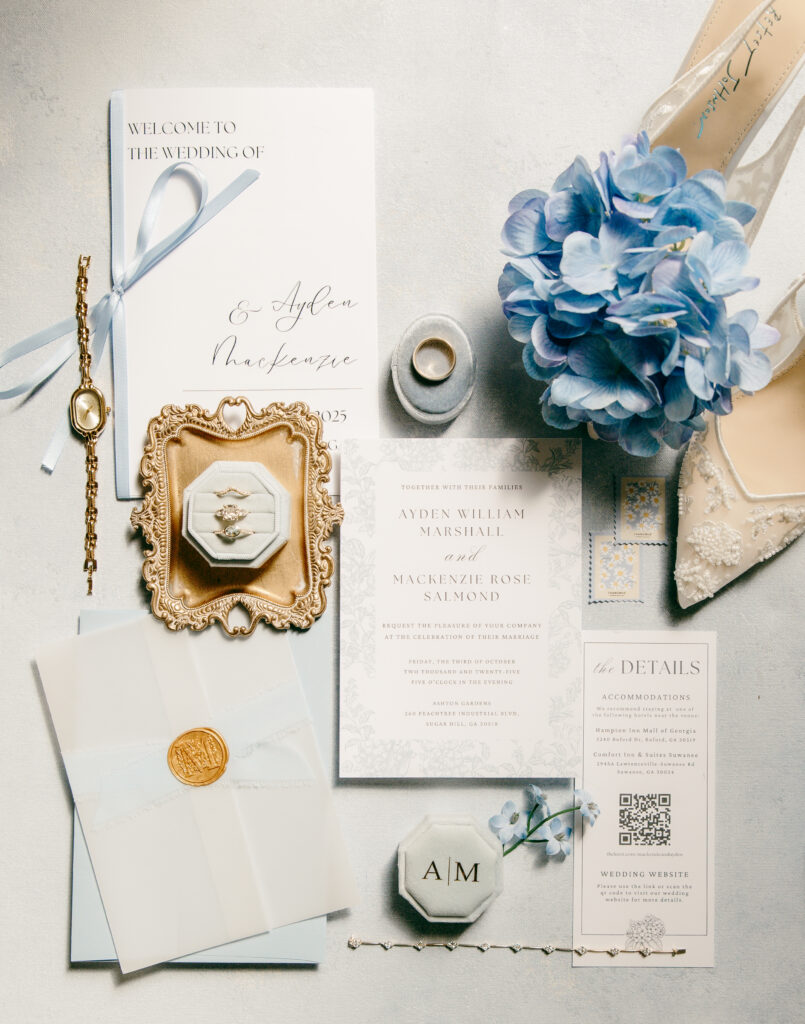 Ashton Gardens Sugar Hill is one of my absolute favorite Atlanta area wedding venues, and Mackenzie & Ayden’s day was the perfect example of why. The venue offers a seamless flow from start to finish, making the entire wedding day feel relaxed and un-rushed. The chapel, filled with natural light and romantic architectural details, created a dreamy setting for their ceremony. Soft pastels, greenery, and floral-lined aisles enhanced the already stunning space. The reception hall was just as breathtaking, with florals cascading along both sides of the grand staircase, a spot we used often throughout the evening and one that quickly became a favorite for portraits.