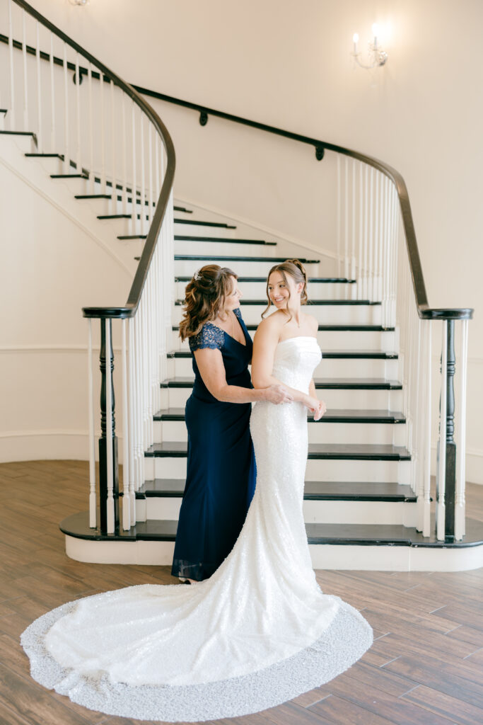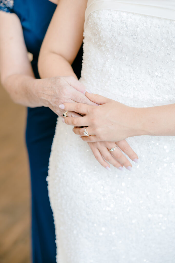 One of the most emotional parts of the day happened long before the ceremony even began. Mackenzie shared some of the sweetest moments with her mom while getting ready. There was a calm energy in the room. The kind that only comes when a bride truly feels present and supported. These moments are always some of my favorites to photograph. The hugs, the glances, the pauses where everything sinks in, they’re fleeting but incredibly powerful.