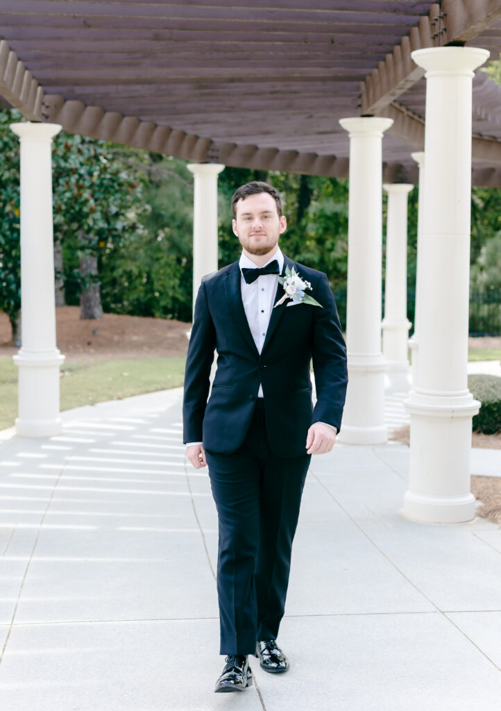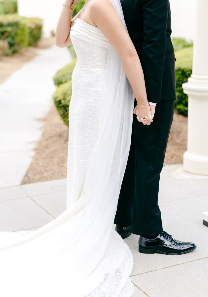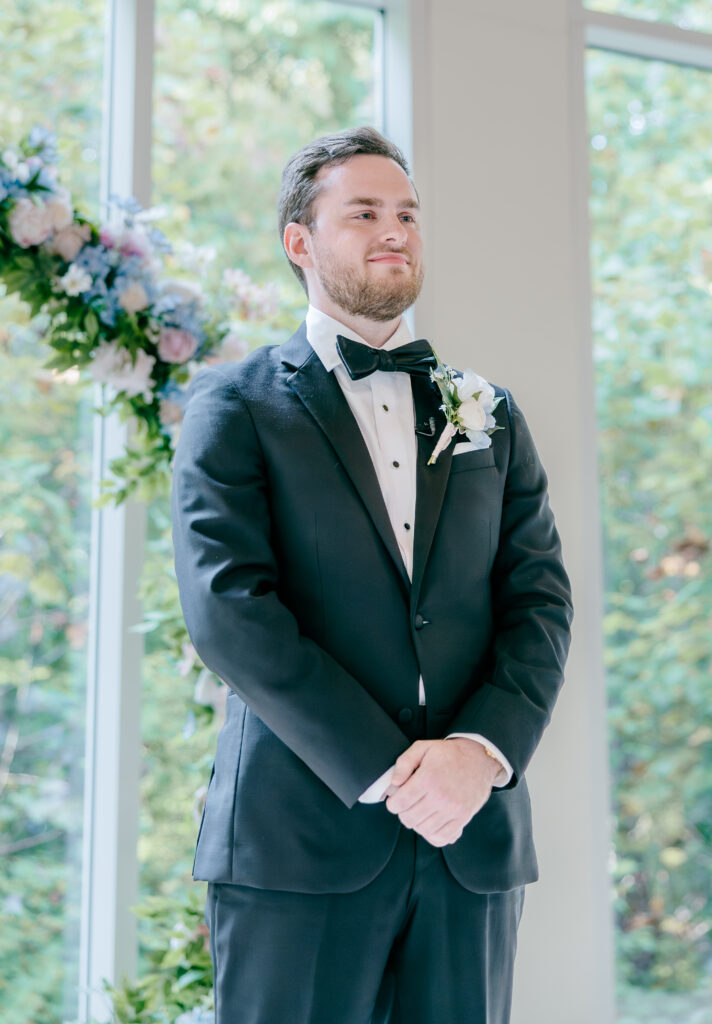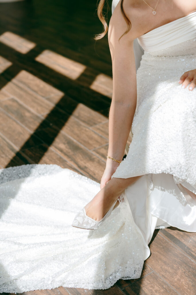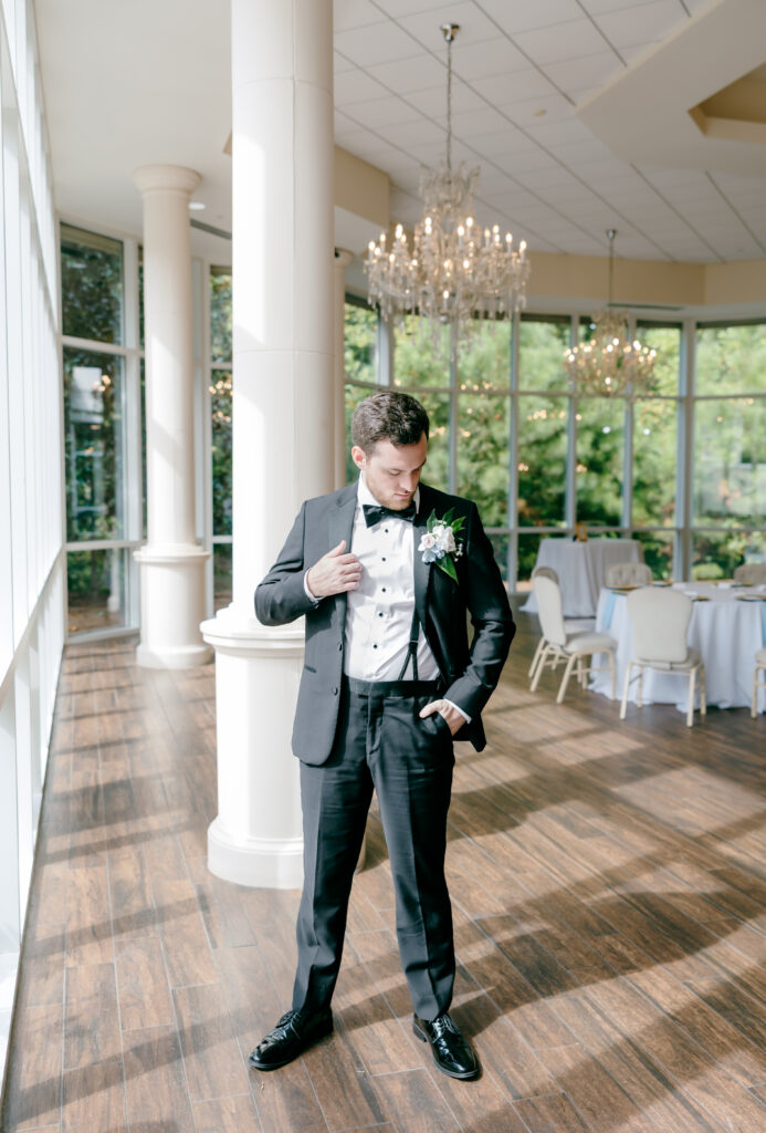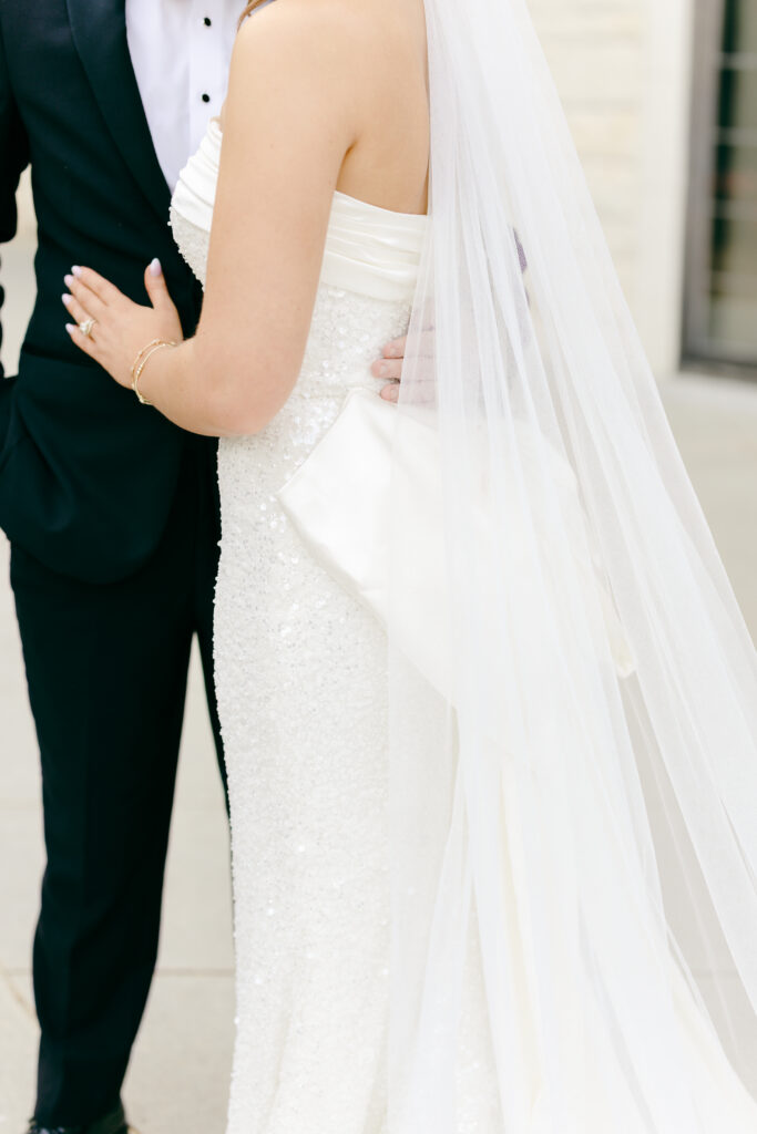 This was hands down one of the most beautiful dresses I photographed in 2025. Elegant, strapless satin with stunning sparkle details, with a detachable long flowing skirt. It fit her perfectly. After the ceremony, she transformed her look by adding a bow, creating the perfect second look for the reception. Ayden’s attire complemented her effortlessly with a classic, multi-piece black suit and bow tie. Timeless, polished, and perfect for such a refined day.