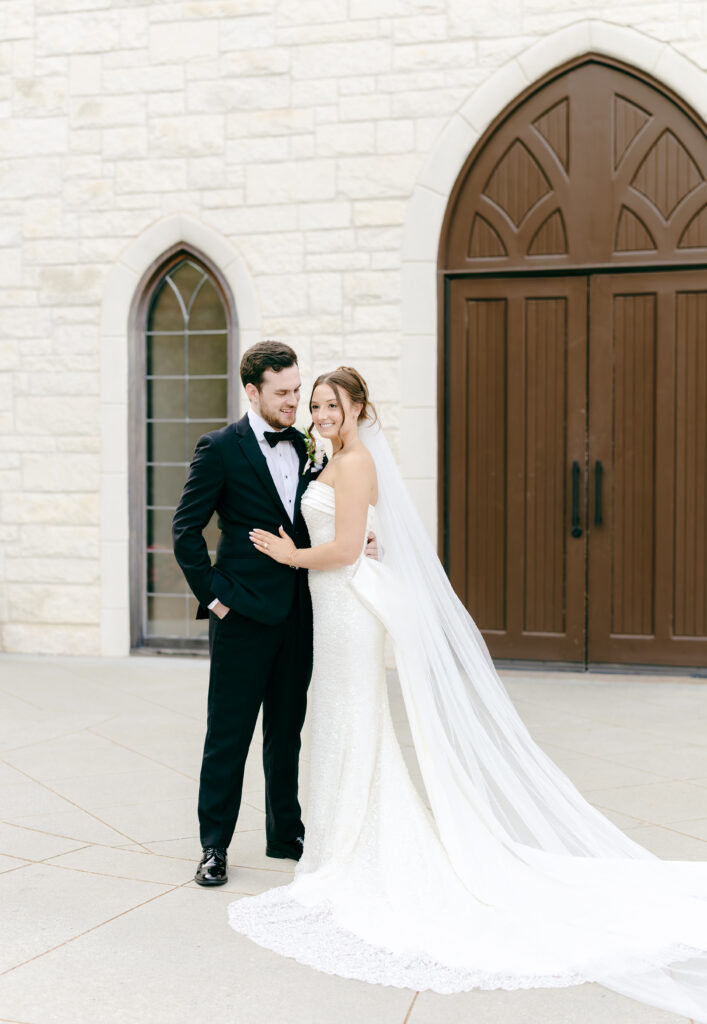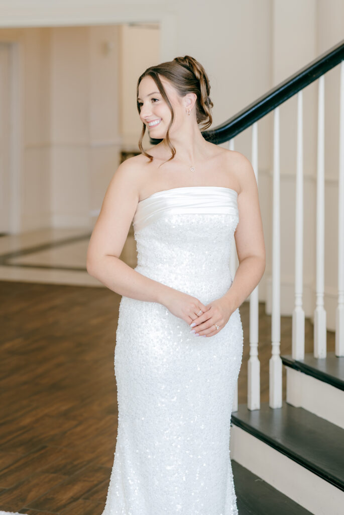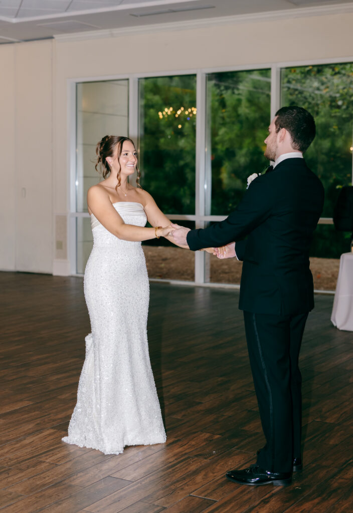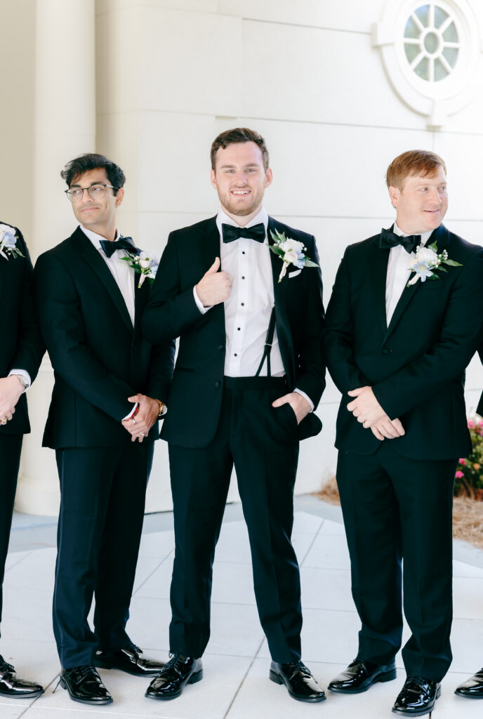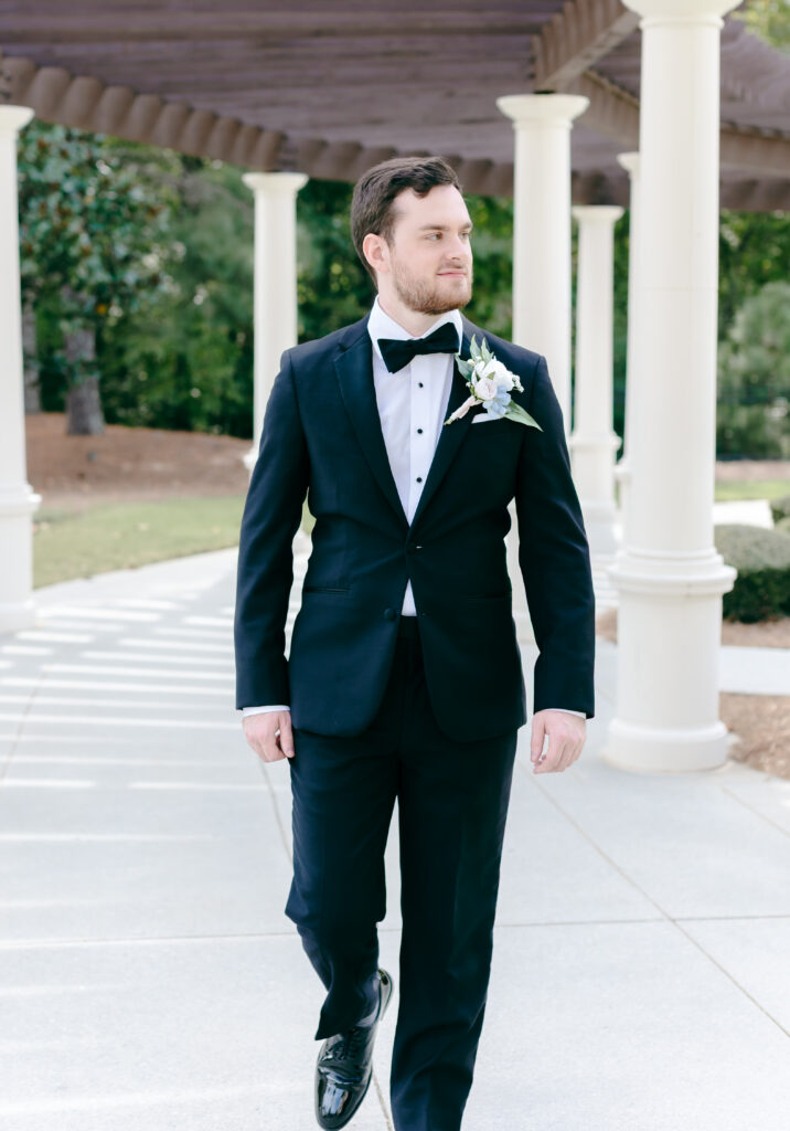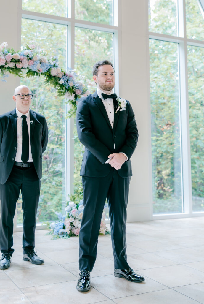 This was hands down one of the most beautiful dresses I photographed in 2025. Elegant, strapless satin with stunning sparkle details, with a detachable long flowing skirt. It fit her perfectly. After the ceremony, she transformed her look by adding a bow, creating the perfect second look for the reception. Ayden’s attire complemented her effortlessly with a classic, multi-piece black suit and bow tie. Timeless, polished, and perfect for such a refined day.