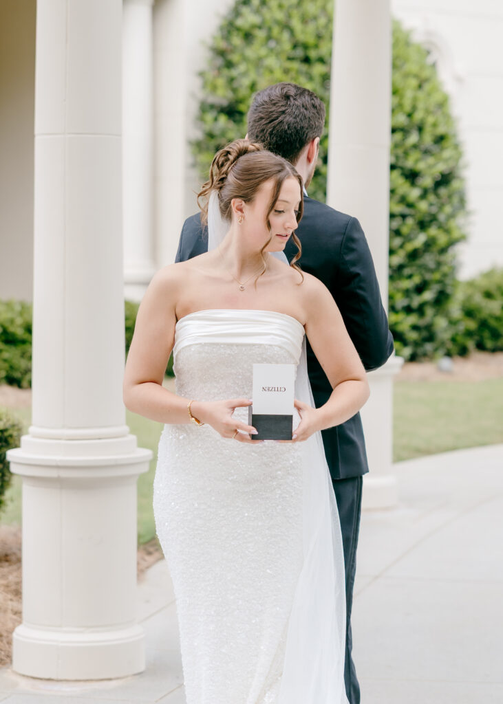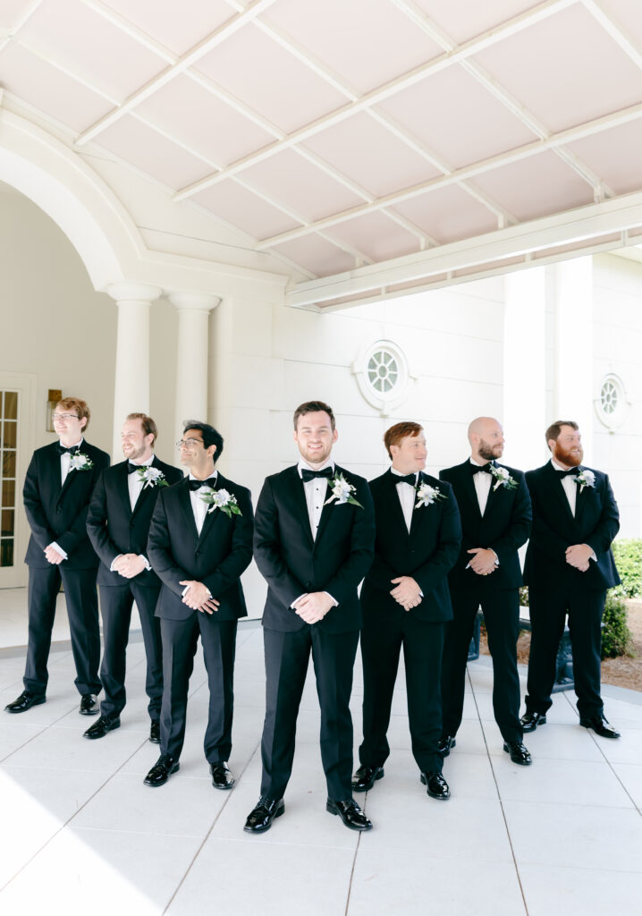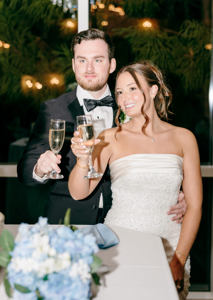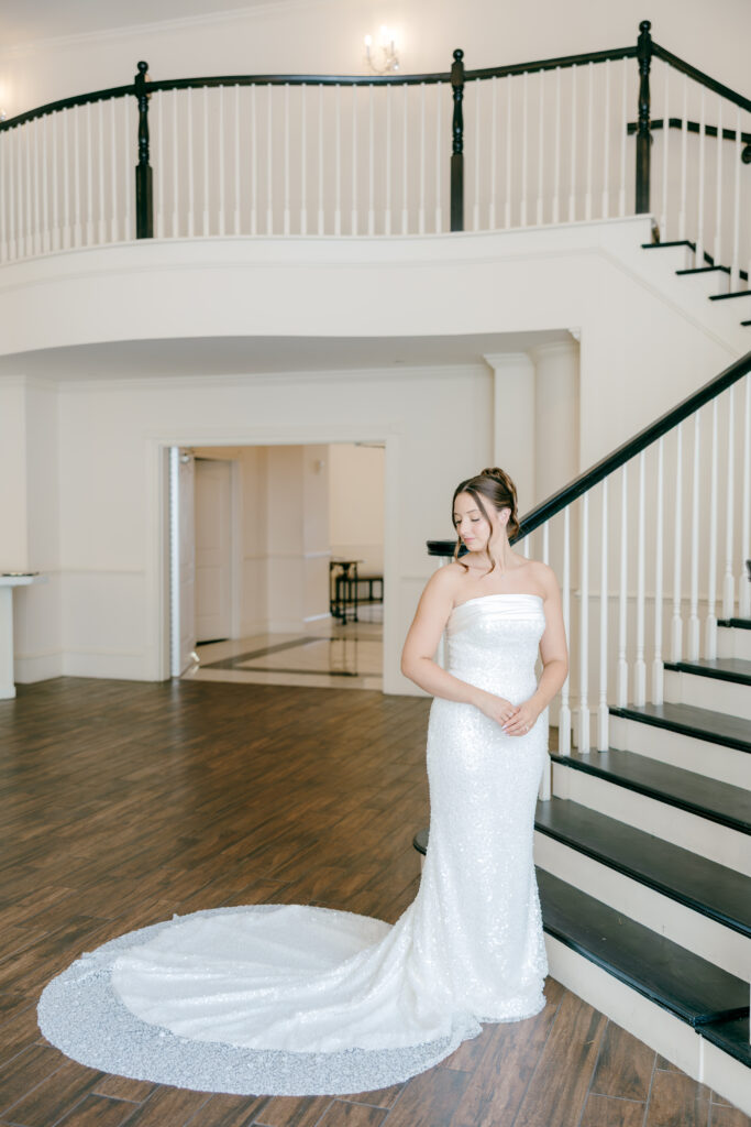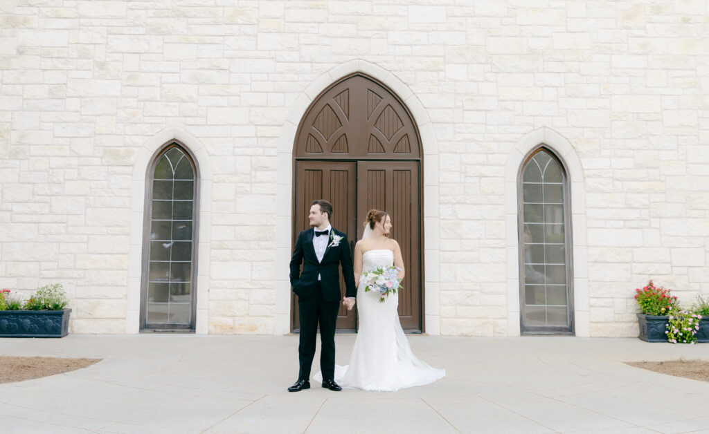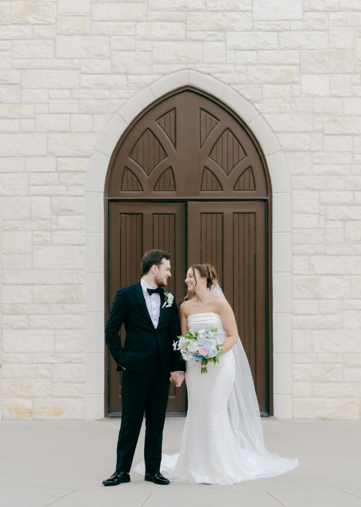 This was hands down one of the most beautiful dresses I photographed in 2025. Elegant, strapless satin with stunning sparkle details, with a detachable long flowing skirt. It fit her perfectly. After the ceremony, she transformed her look by adding a bow, creating the perfect second look for the reception. Ayden’s attire complemented her effortlessly with a classic, multi-piece black suit and bow tie. Timeless, polished, and perfect for such a refined day.