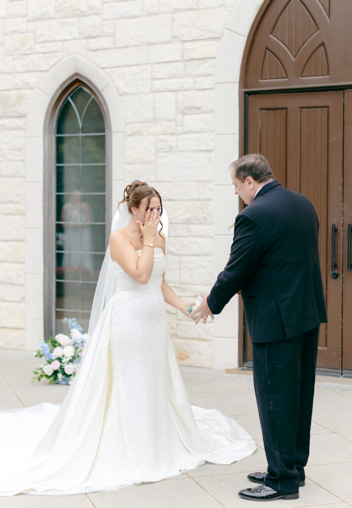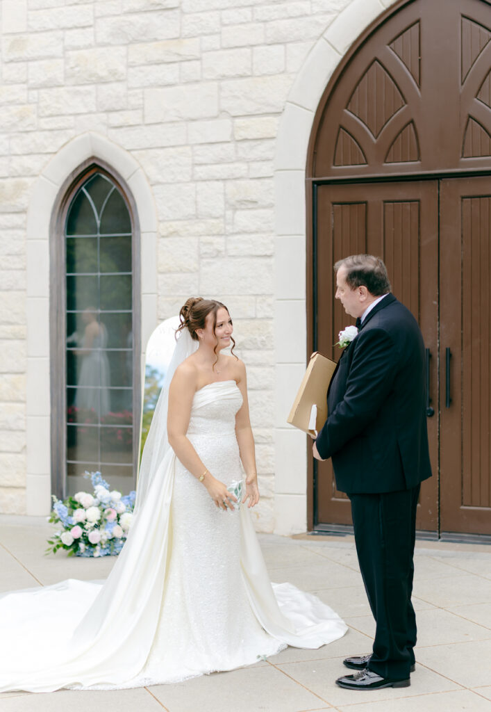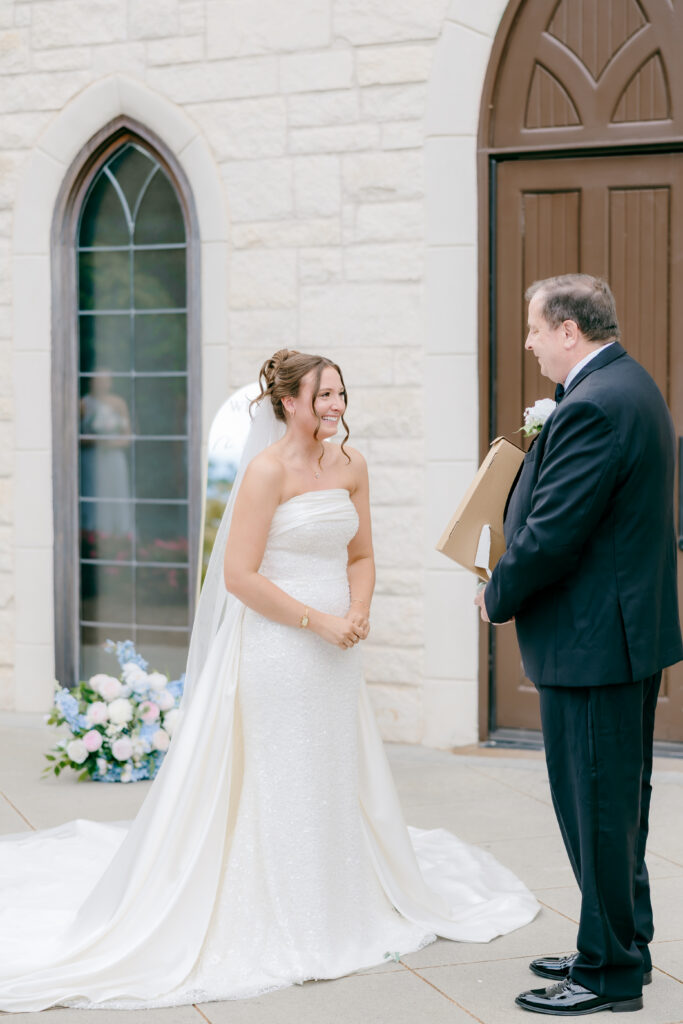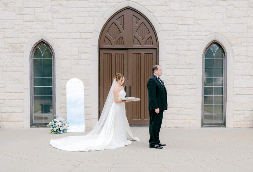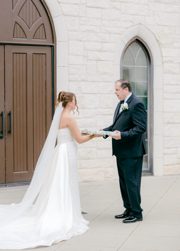 Right after, emotions were still running high, so we made a last-minute decision to do a first look with her dad. Mackenzie gave him the sweetest gift, and the two of them stood together, soaking it all in. His little girl was getting married and you could feel the pride, love, and tenderness in that moment.
