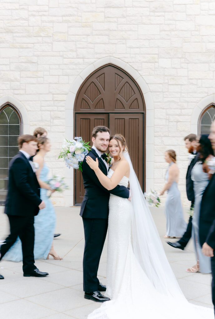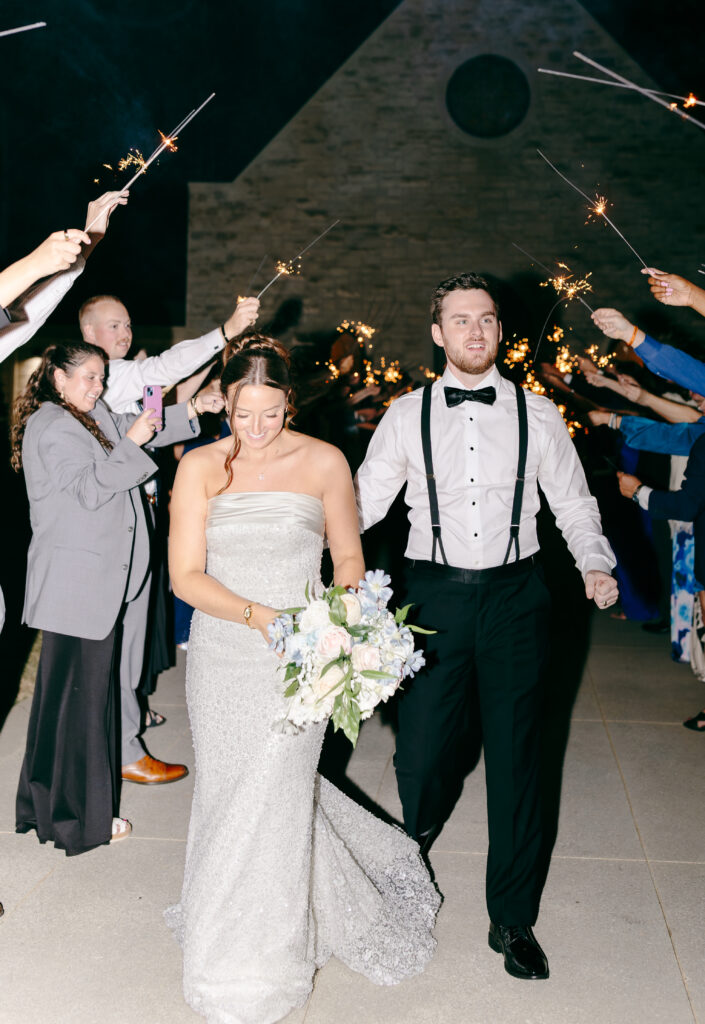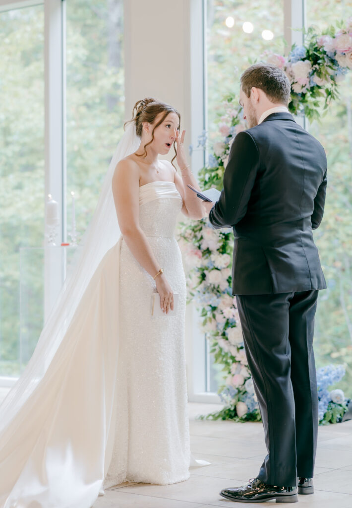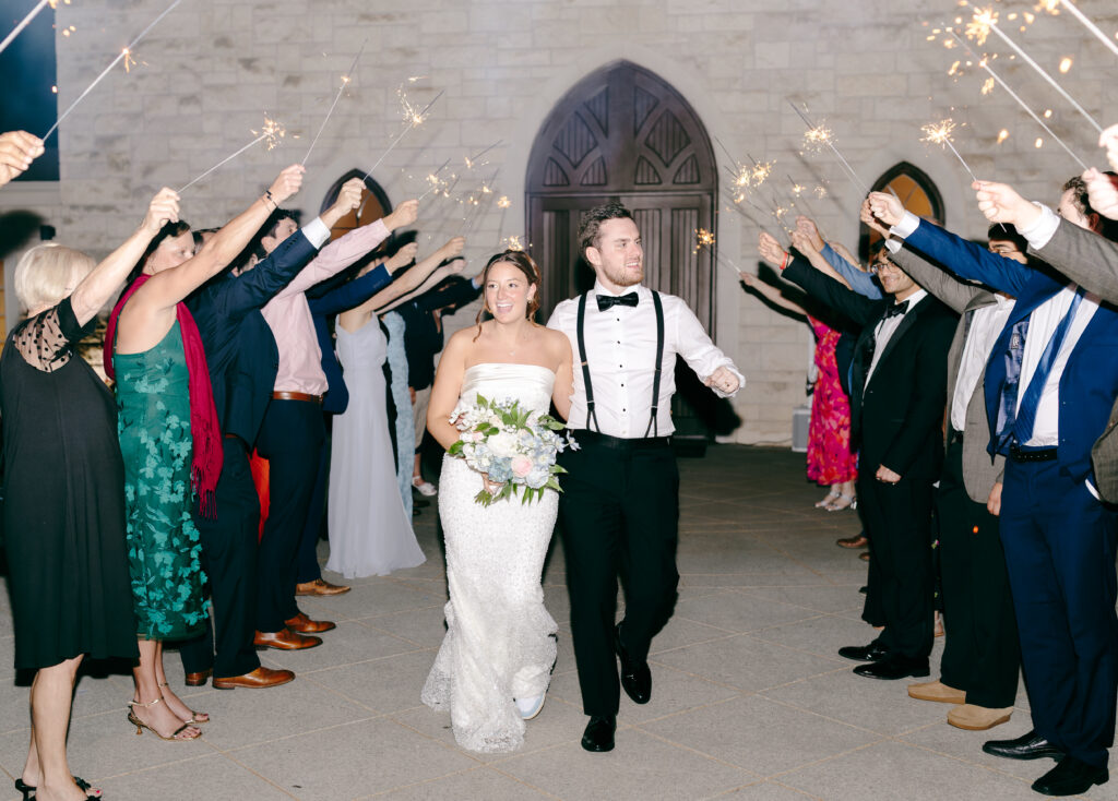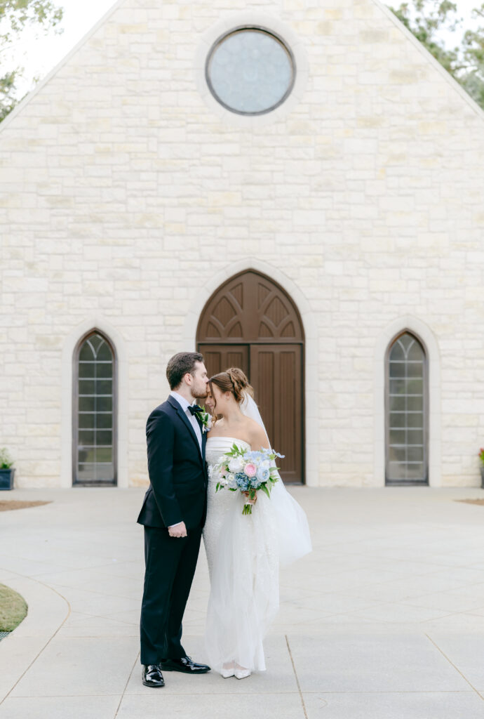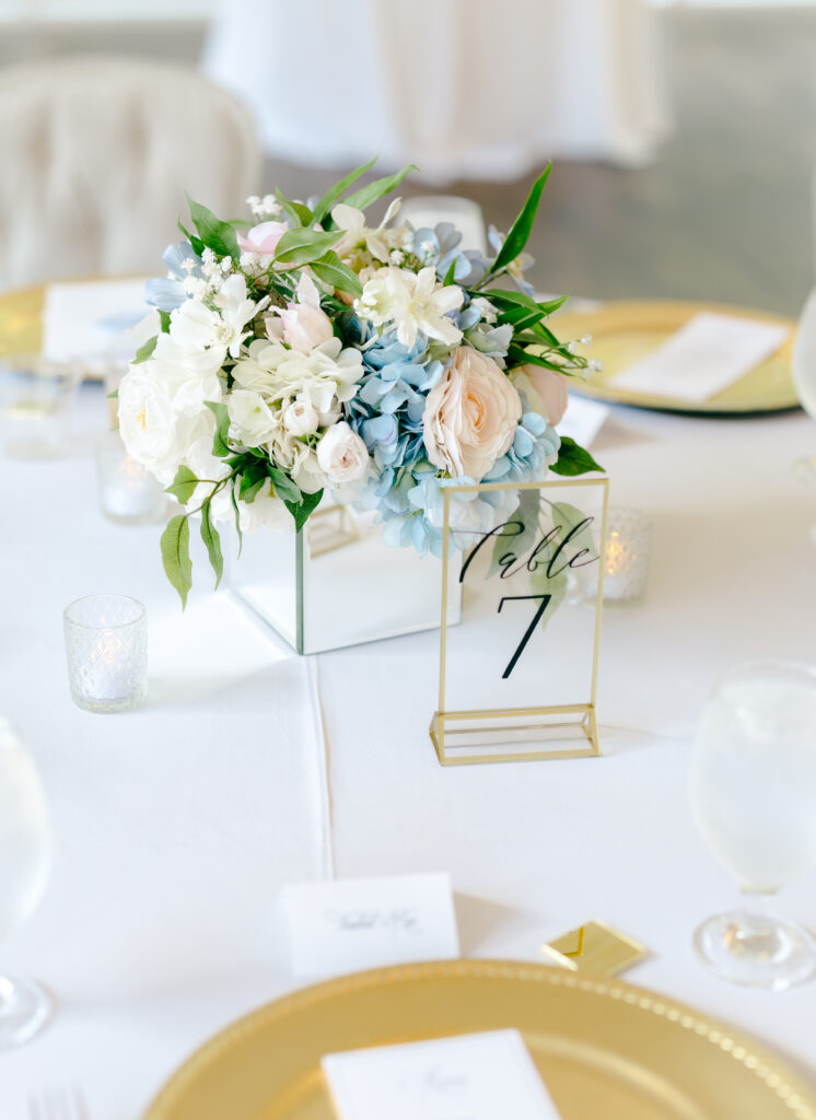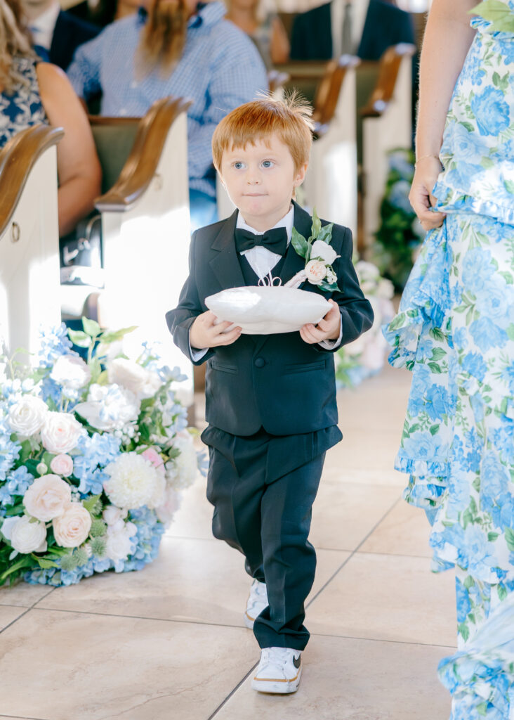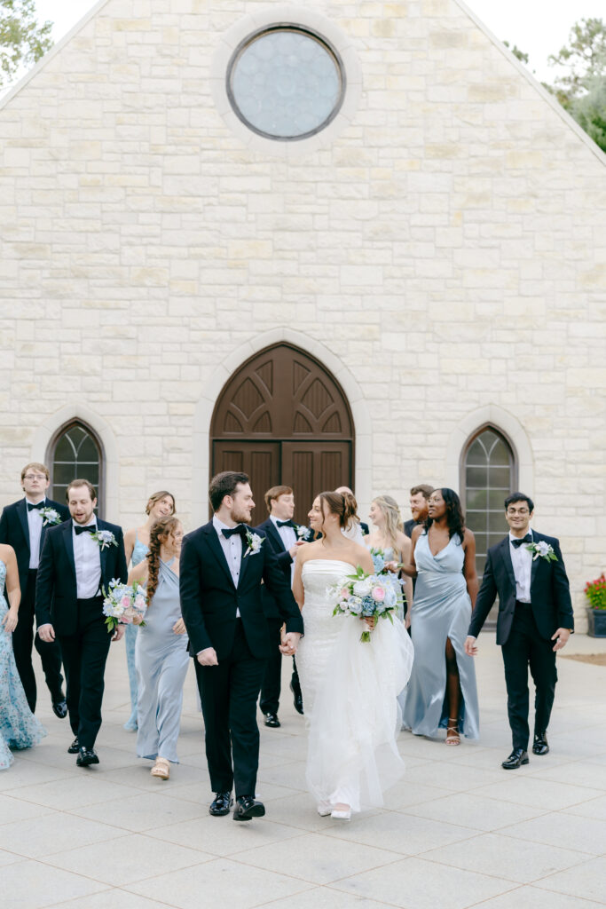 Their ceremony took place in the chapel, surrounded by natural light pouring in through the windows. Pastel florals in shades of blue, pink, cream, and greenery lined the aisle and ceremony arch, creating a soft, romantic atmosphere. The moment Mackenzie walked down the aisle felt electric. The love between these two was undeniable, and every guest felt it.